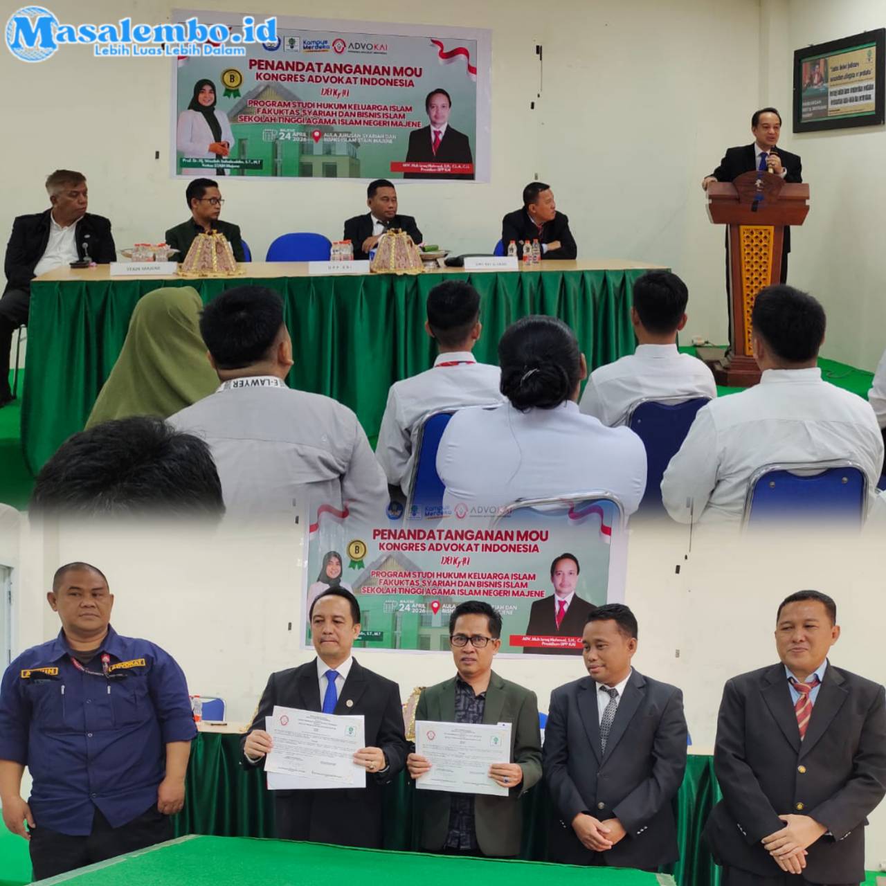 MAJENE, MASALEMBO.ID – Kongres Advokat Indonesia (KAI) resmi menjalin kerja sama dengan STAIN Majene melalui penandatanganan Memorandum of Understanding (MoU) yang dirangkaikan dengan pembukaan Pendidikan Khusus Profesi Advokat (PKPA) di Sulawesi Barat (Sulbar).