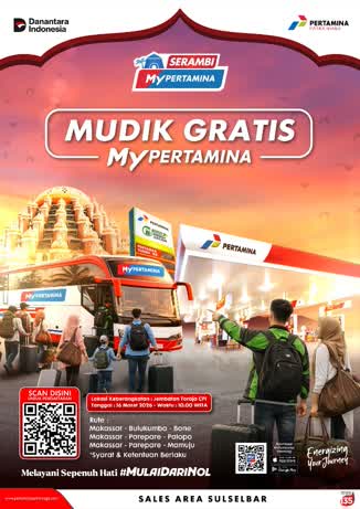 MAKASSAR,MASALEMBO.ID-Menyambut momen Ramadan dan Idulfitri 1447 H, PT Pertamina Patra Niaga Regional Sulawesi melalui Sales Area Sulawesi Selatan dan Sulawesi Barat menghadirkan program Mudik Gratis MyPertamina bagi masyarakat.