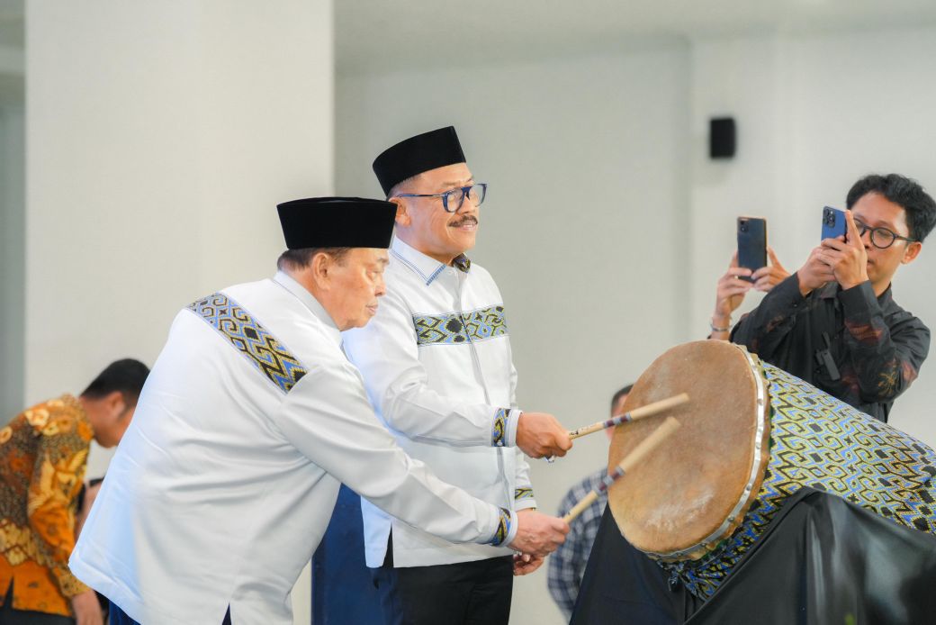 Gubernur Suhardi Duka dan Wagub Salim S Mengga memukul bedug tanda dimulainya STQH XI Sulawesi Barat. (Foto: Kominfo Sulbar)